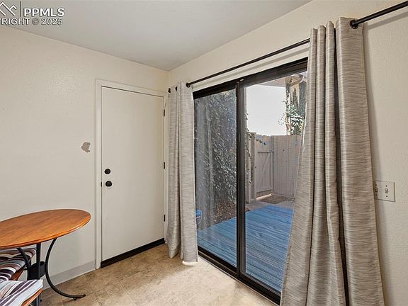 Welcome to this peaceful and well-maintained home tucked away in the heart of Ocho Caballos, right next to the Colorado Springs Country Club. Step into the spacious living room where a cozy wood-burning fireplace and expansive sliding glass doors create a bright and welcoming space that opens to a private front patio—perfect for relaxing or entertaining. The dining area connects seamlessly to the kitchen through a generous pass-through, with more sliding glass doors leading to the back patio for easy indoor-outdoor living. The kitchen features newer appliances, an eat-in nook, pantry, and a convenient laundry closet. A main-level half bath is perfect for guests. Upstairs, the primary suite offers vaulted ceilings, stunning mountain views, a large walk-in closet, and an en-suite bath. Two additional bedrooms offer flexibility—one with its own walk-in closet, the other featuring double closets and a private balcony. Additional highlights include a south-facing two-car attached garage (great for quick snow and ice melt), community pool, and tennis court. The low HOA fee even includes water! Homes in this sought-after neighborhood rarely come on the market—don’t miss your chance to make this one yours!
