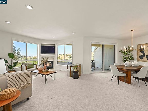 50K Price Reduction! Spectacular Villa Nuevo condo with panoramic Mt. Diablo and hillside views from every window! Elevator leads to this spacious 3-bedroom, 2-bath, 1661sf home in Rossmoor. Home has been beautifully updated, featuring a remodeled kitchen with quartz countertops and Bosch & GE Profile appliances. Family room and formal dining area features a cozy fireplace and patio with views. Newer windows, sliding doors and window coverings. New carpet, luxury vinyl flooring, paint, and new modern lighting add to the move-in appeal. The serene primary suite boasts a private patio with stunning Mt. Diablo views, perfect for morning coffee. Primary remodeled bathroom includes new dual vanity and luxury vinyl flooring. Additional highlights include dedicated laundry with washer/dryer, elevator or one flight of stairs access, one-car detached garage, and covered carport. Enjoy the elevated Rossmoor active lifestyle in this amazing home!