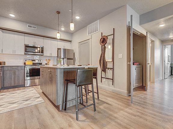 - Exterior features: , Balcony, Direct Attached Garages*, Distinctive Wood-Style Flooring, Dwelo Smart Home Technology, EV Charging Stations*, Housekeeping, Modern Soft-Close Cabinetry, On-Site Management, Online Leasing and Applications, Online Rent Payments and Service Requests, Open-Concept Living Areas, Outdoor Space with Seating and Barbeques, Oversized Windows, Package Receiving, Parking Available, Pet Park, Programmable Thermostats and Lights, Quartz Countertops Throughout, Splash Pad, TV Lounge, Two-Tone Paint, USB Charging Outlets, View Type: Unbeatable Views*, iCafe for Residents