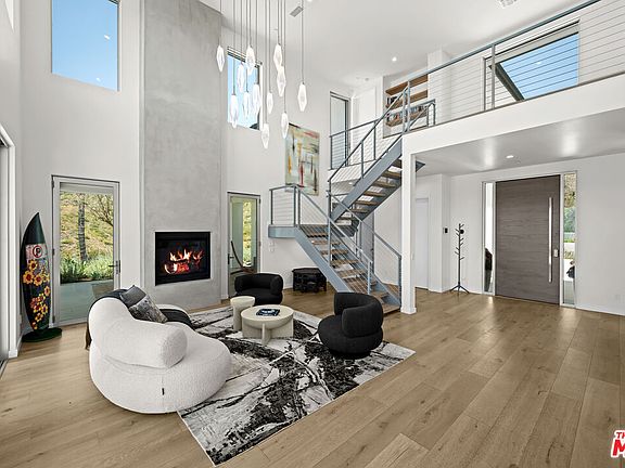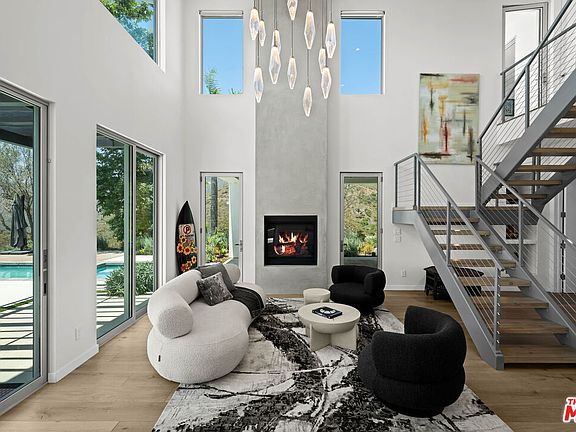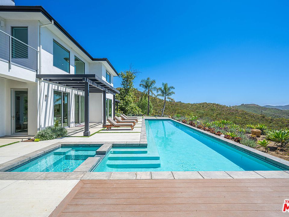 Available August 29. Discover unparalleled privacy, luxury, and natural splendor at this newly built, modern 4-bedroom, 4-bathroom estate sprawling across nearly 10 acres of tranquil Malibu countryside. Nestled behind a secure gated driveway, this architectural gem offers serenity and sophisticated living for the discerning homeowner. Panoramic mountain vistas envelop the property, showcased through soaring ceilings and expansive floor-to-ceiling windows with automated shades. The open-concept interior boasts elegant wood flooring and a bold custom concrete fireplace as its centerpiece. The chef's kitchen, outfitted with top-tier appliances and a generous pantry, seamlessly connects to an outdoor entertainment haven featuring a built-in BBQ, pizza oven, and ample dining space for gatherings. A dedicated den/movie room provides a cozy retreat for film nights. The primary suite is a haven of calm, complete with a spa-like bathroom, steam shower, and stunning views from a spacious upper deck. Two stylish guest suites reside upstairs, while a third, self-contained mini-suite occupies the main level. Outside, a glistening pool, spa, and infrared sauna are immersed in nature's quiet, accompanied only by birdsong and gentle breezes. Across the grounds, enjoy a lively bocce ball court and thriving vegetable garden. A two-car garage and robust Wi-Fi network enhance convenience. Ideal for stargazing or hosting memorable events, this extraordinary home delivers a lifestyle of peace, elegance, and seclusion you'll cherish forever.