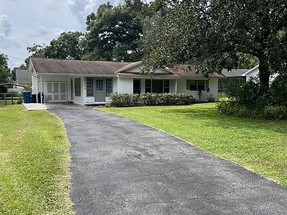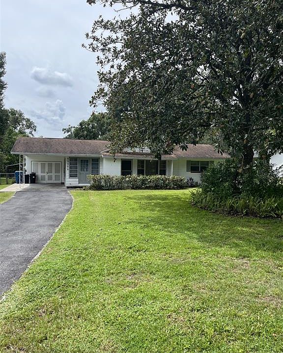 Great opportunity to purchase this older well built home in perfect location to commute to Tampa, Orlando and Ocala areas. This 2/1 bath home offers a Florida room along with a 12x19 screen porch over looking a large fenced in rear yard. This property offer a 1/2 acre shaded lot. Home offers a living room with fireplace, dining area, kitchen with wood cabinets, Florida room with lots of windows for natural lighting, carport with attached workshop/utility room. Roof was replaced in 2019. Great starter home or perfect winter residence.