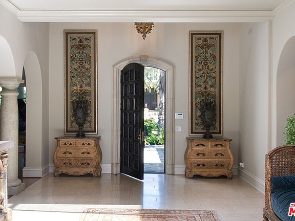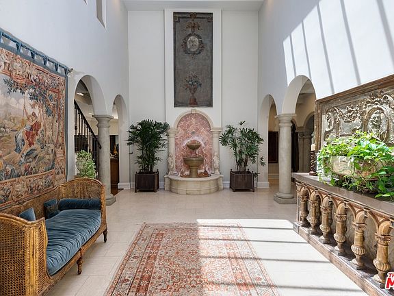 Located in the private and coveted gated Mulholland Estates of Beverly Hills, this elegant 5-bedroom, 6-bathroom tennis court estate offers luxurious indoor/out living for the quintessential California lifestyle home. The grand formal foyer and living room expand with soaring high ceilings and double height windows. Gourmet kitchen opens up to cozy family room, wood paneled office/library, formal dining room. All French doors open up to unique patios and fountains surrounding the home. Secluded backyard luxuriates in a resort style setting. Beautiful views from the balconies, veranda, heated pool/spa. Newly built gym located adjacent to the N/S tennis court. Impeccable attention to detail throughout, this home is truly a must see.