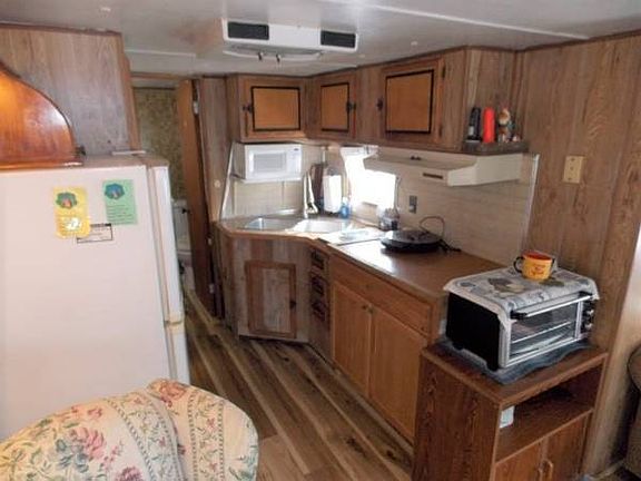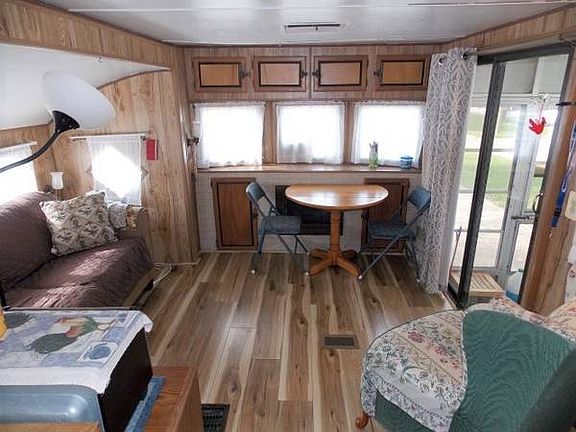 ** Exclusive Listing! Contact listing agent below for ALL showings and offers.** You will be soon sitting pretty and living the good life as the new owner of this picture perfect converted Travel Trailer with a large addition. Priced at only $9,900, and originally measuring 8x32, the home now offers an approximate total of 440 square feet of interior living space, including the Florida room addition. It is immediately available, move-in ready and will be sold partially furnished, so you'll have an easy time of making this your home, your way. Outside, the super long, double wide driveway will be the envy of your neighbors. Your new home is located in Palm View Gardens of Zephyrhills, a very well maintained and friendly 21+ adult community close to all the best of Central Florida. The low lot rent of $395 includes water, sewer, trash removal, lawn care, and use of park amenities. Palm View Gardens allows adults age 21+! Two small pets are allowed (30# limit each) or one larger pet (60# limit). All residents must have 600 minimum credit score and pass background check. The lot rent of $395 includes water, sewer, trash, and lawn mowing. This is a converted travel trailer home on leased land. The monthly lot rent is $395. The land/lot is not included with the sale.