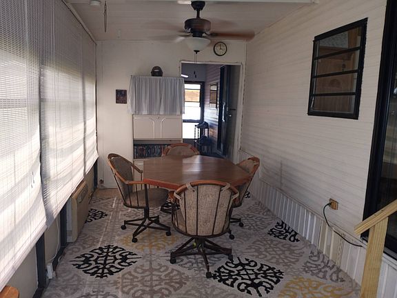 Priced to Sell!! Located in a very active RV resort near shopping, restaurants and easy access to surrounding cities. This cute home is very comfortable and clean. You will be pleasantly surprised at the amount of space there is and how comfortable you can be living here. Plenty of parking space for more than two cars. The back has a lovely patio area and two good size sheds for plenty of storage with a washer and dryer located in one of them. As you enter the attached Florida room, you will find a spacious living area with air conditioner for an all weather seating and plenty of windows to bring in natural light. Behind this lovely room is a good sized extra room that can be used as a second bedroom or a craft room! The main home has an open floor plan with enough space for another living area to handle two recliners, and a sofa plus your dining table as well. The kitchen has a propane stove with a microwave and refrigerator. The bath has a stand up shower and the bedroom has built in closet and drawers for storage. You can't beat the price of this wonderful home!!! Give me a call to schedule an appointment to see for yourself. Make offer!! Lot rent is only $395!