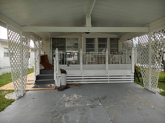 21+ADULT COMMUNITY/1983/2BD/2BA/600 SQ FT/LOT RENT IS ONLY $395/CARPORT COVERED DRIVE/COVERED FRONT LANAI/BACK PATIO/ There's a year-round vacation vibe in the pet friendly and people friendly community of Palm View Gardens where the many amenities for residents include recreation hall, library, heated pool, craft building, shuffleboard, stocked lake for fishing, bingo, dances, and much more. You can start your day with a cup of coffee on your front lanai, saying hello to your new neighbors. There's also a back patio area ideal for the grill and the storage shed is also in this area. This is a great home for snowbirds or full timers. There is laminate flooring with carpet in the bedrooms. The kitchen has room for a breakfast table and good cabinet and counter space. The main bath is very large with tub and single sink vanity. The main bedroom has built-in closet with triple sliding mirrored doors and storage below plus more overhead built-ins. There is a guest bedroom and the guest bath has a step-in shower, linen closet, and single sink vanity. You'll have easy access to all of Tampa Bay, the beach areas, and downtown Tampa, as well as the resorts of Orlando and Legoland, but all tucked back in the peaceful country atmosphere of Zephryhills where you will find plenty of local shopping, dining, festivals, nature areas, and medical facilities. This is a nice, nice spot at a great price. Call today and schedule your showing and get your next chapter started!