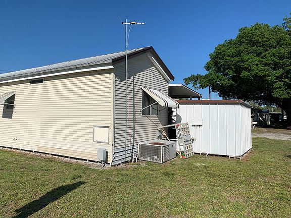 21+/1993/1 BD/1 BA/456 SQ FT/LARGE FLORIDA ROOM/PARK FEES ONLY $446/LARGE STORAGE WITH WASHING MACHINE AND INCLUDES SOME TOOLS/FULLY FURNISHED/2022 CHEST FREEZER/2023 REFRIGERATOR/CENTRAL AIR/This home has a wonderful 304 square foot Florida room that will give you some great bonus space. The carport covered driveway has ample parking. Fully furnished and comes with 2022 chest freezer and 2023 refrigerator included as well. There is a front entry as well as the sliding glass entry from the Florida room. The living room has an open feel with vaulted ceilings and plenty of natural lighting from the bay windows across the front of the home. The light honey colored wainscotting and laminate flooring add a bright touch as well. The bath has a tub/shower combo. The bedroom has a raised double closet with mirrored sliding doors and all kinds of storage below with six pull out drawers, as well as built-ins over the bed and another smaller closet beside the double closet. The back entrance off the Florida room has a ramp entrance. The storage shed houses the washing machine. This home is located in the people friendly and pet friendly community of Palm View Gardens, There's a year-round vacation vibe where the many amenities for residents include recreation hall, library, heated pool, craft building, shuffleboard, stocked lake for fishing, bingo, dances, and much more. You'll have easy access to all of Tampa Bay, the beach areas, and downtown Tampa, as well as the resorts of Orlando and Legoland, but all tucked back in the peaceful country atmosphere of Zephryhills where you will find plenty of local shopping, dining, festivals, nature areas, and medical facilities. This is a bright and cheery home with good lots storage throughout and a very large Florida room. It's priced to sell and will not last long so call today and make the appointment for your showing and start your new chapter!