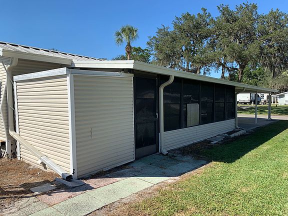 21+/1985/1BD/1BA/385 SQ PLUS 300 SQ FT FLORIDA ROOM/FULLY FURNISHED AS SHOWN/LARGE CARPORT COVERED DRIVEWAY AND ROOM FOR PATIO AND VEHICLES/STORAGE SHED/This is a sweet spot for a winter home or year round living. The Florida room is a great bonus space for hobbies, extra room for guests, or whatever your needs may be. There are blinds for all windows in the Florida room as well as the sliding glass entrance in the Florida room. There is a cozy cove area in the living room that just fits the daybed that's included and would make an awesome reading nook when you aren't enjoying the outdoor area and the great amenities the community has to offer. The couch that's included is a sofa bed. There is plenty of room in the driveway for vehicles and still room for a patio area, all under cover of the carport. The bedroom also has a cove area with some built-in storage above the window. This little hide-a-way is located in the pet friendly and people friendly community of Palm View Gardens where there's a year round vacation vibe. The many amenities for residents include recreation hall, library, heated pool, craft building, shuffleboard, stocked lake for fishing, bingo, dances, and much more. You'll have easy access to all of Tampa Bay, the beach areas, and downtown Tampa, as well as the resorts of Orlando and Legoland, but all tucked back in the peaceful country atmosphere of Zephryhills where you will find plenty of local shopping, dining, festivals, nature areas, and medical facilities. Homes are moving fast so call today to make an appointment to see this property and get your new chapter started!