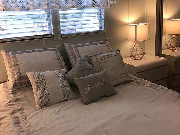 Move in ready. Located at Palm View Gardens, Zephryhills. Florida 100 Amp service Central heat/air conditioning 2.5 ton, new in 2018 with 10 year parts warranty New roof in 2015 with a 15 year leak warranty All windows professionally tinted New kitchen floor Hurricane shutters Nice shed Private patio blinds.valances Furnished Storage/laundry room with washing machine