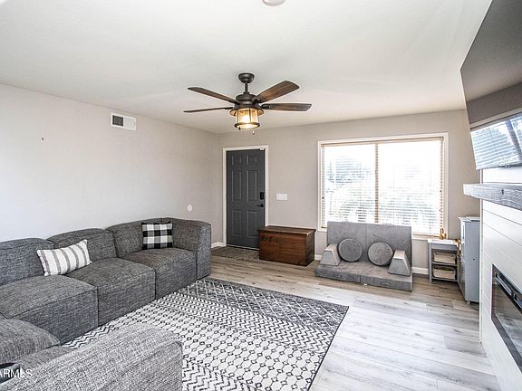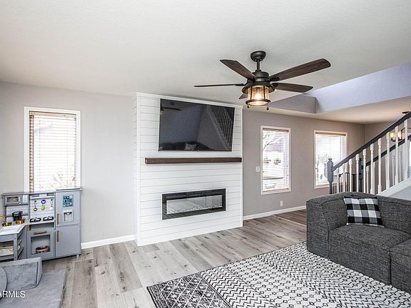 Quiet and Private home site - Gated neighborhood with community pool/spa in North East Mesa!! Move-in ready, updated and upgraded throughout! 3 bedrooms, 2.5 baths and a huge loft!! Light and bright kitchen with white cabinets, granite counters and stainless-steel appliances. Upgraded flooring throughout with NO carpet, brand new electric fireplace with shiplap surround. Upgraded bathrooms with granite counters and tile at the primary shower. Fresh interior paint, newer HVAC, tankless water heater, new sliding pantry door, tons of beautiful upgrades. Backyard is an entertainers dream with no maintenance, covered patio with ceiling fans, turf, raised planter, large concrete surface and a brand-new shed for storage. This is a must see and this location cannot be beat!!! Excellen Excellent freeway access, shopping, dining, golf, close to lakes and the Salt River, endless hiking opportunities...the list goes on and on!