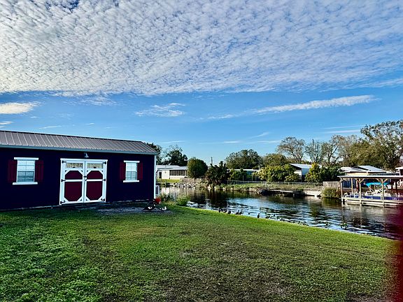 MADE for LOVE! Lake ''O'' Access2020 Mobile home with Hardie Plank siding, on SE 28th. Lovely Open concept, island kitchen, Corian counters, 2 Bd/ 2 Ba w/ beautiful new bamboo flooring and fantastic water view FOR HER! Partially furnished! Insulated 12X24 Man Cave w/ split unit AC, Frig, and big TV with work tables and storage, as well as a 75' Seawall w/ concrete cap and dock for HIM! 40' driveway with turnaround for boat and truck. Canal can handle 52' Mast and up to 42' Sailboat with 4' draft. YOUR FLORIDA HOME! Dimensions are approximate, must measure for exact