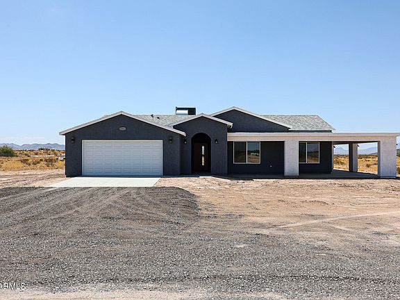 Stunning new construction on a huge 1 acre property in Tonopah! This brand new 4 bed/2 bath single-level home features an open floor plan, high ceilings, neutral colors, and ample natural light. The kitchen boasts elegant countertops, exquisite cabinetry, new stainless steel appliances, both pendant and recessed lighting, a large kitchen island, and a sizable walk-in pantry. The master suite includes a walk-in closet and a bathroom with double sinks, private toilet room, and spacious shower. Outside, enjoy the tranquil setting and scenic mountain views from the expansive covered patio. All this in a great neighborhood with easy access to the I-10 and SR 85. Welcome home!