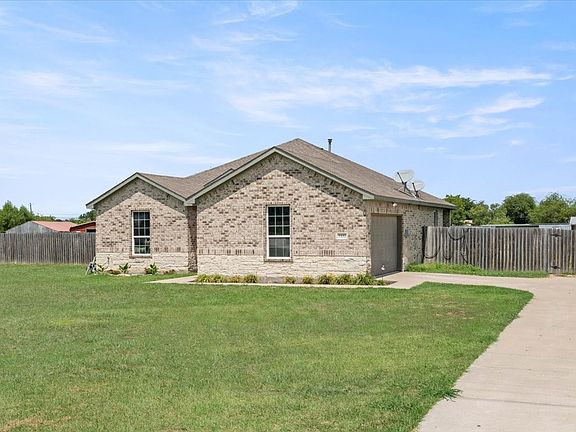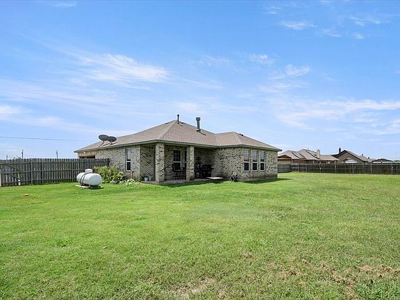 Three bedroom two bath home sitting on one acre! Covered back patio. Kitchen features a Gas stove, all stainless steel with black accent appliances. Granite counter tops and custom built cabinets. Wood burning fireplace in living area. Separate Primary Bedroom with an ensuite bath features dual sinks, separate shower and walk-in closet. Concrete driveway leads to side entry garage. Wood privacy fence. Aerobic Septic, County water, propane gas, no city taxes.