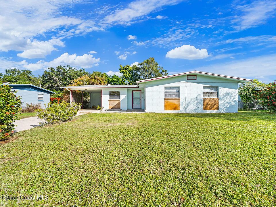 This property features a three-bedroom, two-bathroom layout with durable block construction a shingle roof & new 2025 AC. The residence also includes an extra living room and carport with a laundry room & locked storage space. Its convenient location offers easy access to shopping, dining, and a straightforward commute to Kennedy Space Center, nearby beaches, and I-95.