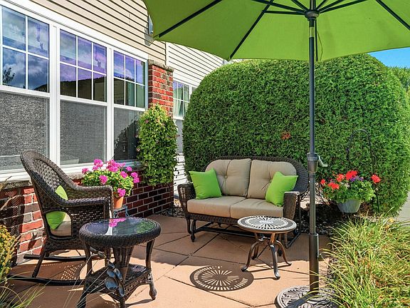 Beautiful 3 bed, 3 bath end-unit townhome featuring hardwood floors, crown molding, wainscoting, and custom blinds. Stylish kitchen with Cambria counters, tile backsplash, updated sink, faucets, and hardware. Luxurious primary suite with Cambria vanity, penny tile floor, soaker tub/shower, and glass shower door. Many updates including new furnace, A/C, refrigerator, dishwasher, water heater, and more. Move-in ready with modern finishes throughout!