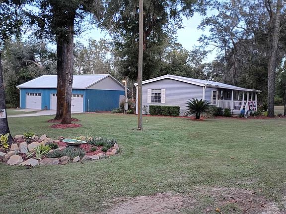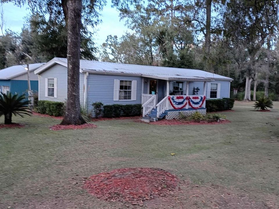 Welcome to your private oasis on 3.25 acres of lush Florida countryside! This beautifully maintained 3- bedroom, 2-bath home, built in 1999, combines contemporary living with the peaceful rhythm of nature, offering a rare opportunity for families, entertainers, and anyone seeking a serene retreat with limitless potential. Step inside to an open floor plan designed for modern living. The spacious living room, dining area, and kitchen flow seamlessly, creating a bright and welcoming environment perfect for daily life and entertaining. The master suite is thoughtfully situated on one end of the home, providing privacy and tranquility, while the other two bedrooms are located on the opposite side, ideal for family or guests. The well-appointed kitchen offers ample counter space and cabinetry, making meal preparation effortless, while the living and dining areas are perfectly positioned for both casual family time and lively gatherings. Enjoy the fresh Florida breeze and natural sounds from the front porch, or retreat to the fully screened back porch overlooking a 15' x 30’ pool, four and feet deep, framed by custom wood decking, large steps, and a charming wooden patio seating area. The pool area, with lighted railings and a connecting sidewalk to the back porch and garage, is perfect for both poolside fun and relaxed outdoor entertaining. The oversized 1,040-square-foot, 4-car garage has been enhanced to include a mancave, a ladies’ special room, and a fully equipped workshop