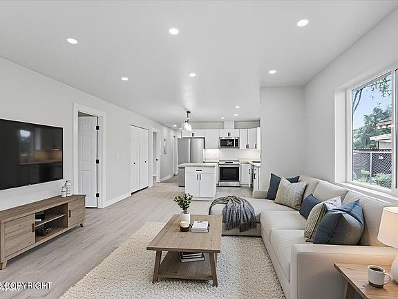 Wonderful single family ranch style home, minutes from JBER, shopping and schools. This like new 4bd, 2ba home offers spacious rooms, open concept living, a nice carport, large, fenced back yard, and an amazing amount of extra parking! This home has been rebuilt from the studs out (all work performed by licensed contractors, fully permitted and inspected by the Municipality of Anchorageto meet all current codes and standards). Brand new engineered trusses, roof, plumbing, electrical, insulation, vapor barrier, drywall, doors, windows, furnace, hot water heater, kitchen, baths, fixtures, appliances, flooring, interior and exterior paint, gutters, etc. It's all brand new and ready for you to move in and make it your home!