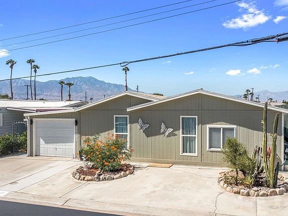 STUNNING golf course home in Tri Palm Estates & Country Club! Located near the pond on the 17th fairway with panoramic mountain views this showplace home has been recently remodeled with luxury treatments in a contemporary style. Recent updates include new kitchen with quartz countertops and stainless steel appliances, LED lighting, modern fixtures, new flooring and paint, furniture from Scandinavian Designs, new LowE large picture windows, newer furnace & AC, and motorized window blinds. Offering a great room floorplan with soaring cathedral ceilings, this spacious home is roomy and beautiful and INCLUDES THE 433A & PERMANENT FOUNDATION NEEDED FOR CONFORMING FINANCING. This home is fully furnished, beautifully maintained and move-in ready! Tri Palm Estates is an active 55+ community where YOU OWN THE LAND and where ownership includes free unlimited golf for 2 deeded owners on the 18-hole and 9-hole par-3 courses, putting green, tennis, pickle ball, shuffleboard, basketball, and use of the community clubhouse with its pools, spas, banquet room, restaurant & bar, billiard room, and organized clubs & activities. Located near Sam's Club/Costco, Agua Caliente Resort & Casino, Home Depot and the Eisenhower Medical Campus, and just minutes to Rancho Mirage, Palm Desert, and downtown Palm Springs. Come make this stunning showplace home your new desert getaway!