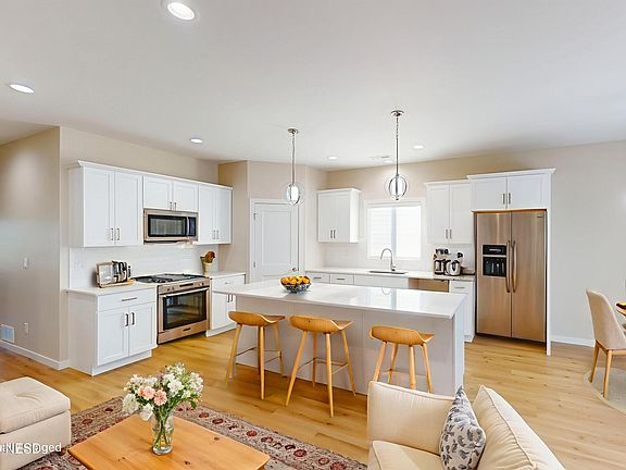 Beautifully constructed 1,560 sq ft twin home located by Cattail Crossing Golf Course! This open-concept home with 9' ceilings features a spacious master suite with tiled walk-in shower, grab bars, and large walk-in closet. The living area includes a Dimplex 60'' fireplace, luxury vinyl plank flooring, and a stylish kitchen with Legend white shaker cabinets, Hanstone quartz countertops, subway tile backsplash, and champagne hardware. Built with quality throughout—Andersen 400 windows, LP SmartSide siding with Diamond Kote 30-yr paint, Eldorado/Edward Stone cladding, GAF shingles, and Tyvek wrap. Interior upgrades include solid core doors, Onyx vanity tops, Delta fixtures, Schlage hardware, and banded shades. Triple wall insulated party wall for soundproofing and 2-hr fire protection.