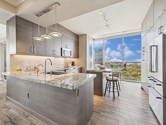 Updated ensuiteStainless-steel appliancesFloor-to-ceiling windowsBuffalo bayou trailsDramatic western viewsBlackout motorized shadesGranite countertops