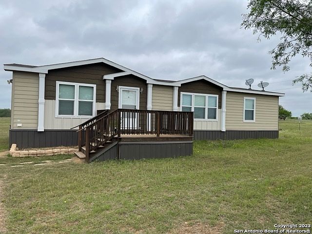 Quiet country living. Beautiful 3/2 mfg home with open floor plan and split bedrooms. Island kitchen with all kitchen appliances staying. Pantry with barn door. Nice size laundry/craft room. Large living. All bedrooms have walk-in closets. Big master bath with double vanities and huge walk-in shower and separate tub. Home has large front porch and back deck. Covered gazebo on approx 20 x 20 slab perfect for BBQs. Stg. shed plus covered area for tractor/equipment and 2 covered horse stalls. All this sits on 14 acres. Plenty of room for horses and/or 4-H, FFA projects. Property is fenced and cross fenced.