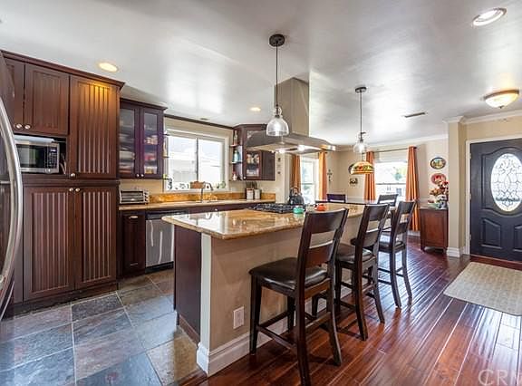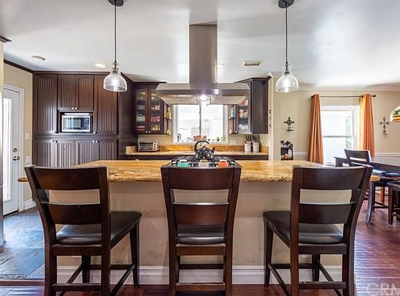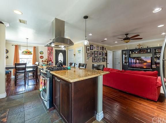 Beautiful open floor plan, great for entertaining family and friends. Custom remodeled kitchen features shaker style cabinets with espresso finish, glass filled upper cabinet doors, granite counter tops, recessed lighting and hands free kitchen faucet. Island that easily seats 4, features pendant lights. Kitchen opens to the living room and formal dining area. Living room with recessed lighting, crown molding, leads to the family room with vaulted ceiling, wood burning stove, recessed lighting, wiring for surround sound speakers, french doors that lead to the patio and yard. Master suite with walk-in closet, recessed lighting, ceiling fan and slider that opens to the patio. Master bath features a spa tub, walk in shower finished in gorgeous travertine tile. 2nd full bath is finished with ceramic tile. The front exterior of the home is finish with decorative brick hardscape accented with rock veneer. Decorative brick accents also used throughout the driveway and rear patio. Block wall fencing, 2 car garage with rollup door, water heater relocated outside, 200 amp electrical panel, central air and heat along with sprinklers front and back. Home is located in the middle of the block and the middle of the neighborhood. Within walking distance of the park with a pool and remodeled playgrounds. Also within walking distance of the elementary school, Junior high, Lakewood Golf course and shopping.