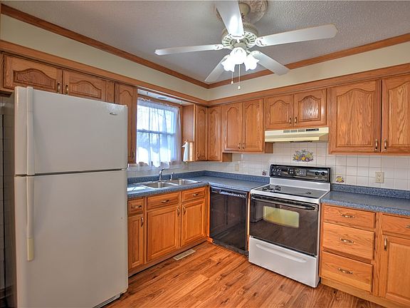 Fresh interior paint. new flooring. Oak kitchen cabinets. Replacement windows.