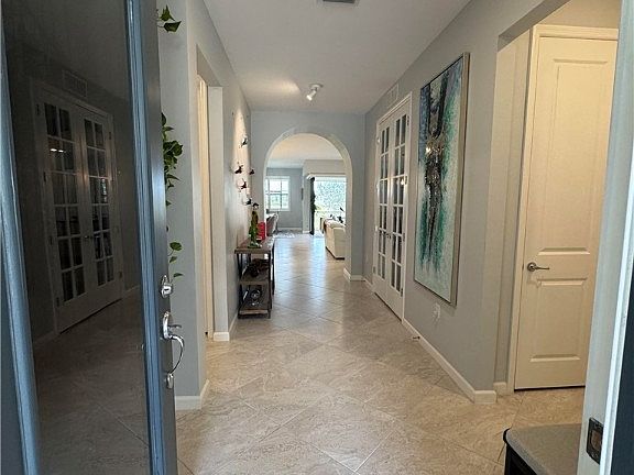 Beautiful 3-bedroom plus den, 2-bath home with a 2-car garage, located in the gated community of Hampton Lakes at River Hall. This home features an open floor plan, a spacious kitchen with stainless steel appliances, plantation shutters, and a whole-house water softener. Enjoy the screened lanai and resort-style amenities, including a pool, fitness center, tennis, pickleball, and basketball courts. Rent includes cable, internet, lawn irrigation, and pest control. Non-smoking property. Pets allowed upon approval. Unfurnished.