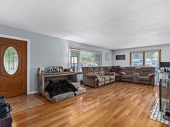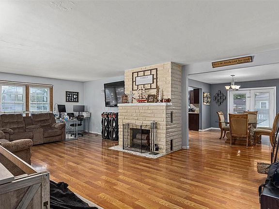 VERY SPACIOUS! This home features 3 bedrooms, 2 baths, two-car garage, and fenced in yard. Cozy and beautiful wood-burning fireplace in the living room (also has a gas line). Wood and tile floors throughout. Separate dining room next to a spacious kitchen. The basement is partially finished with a bonus room or office. All appliances stay.