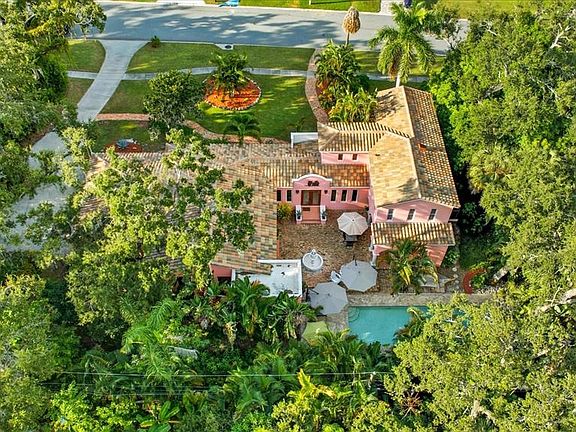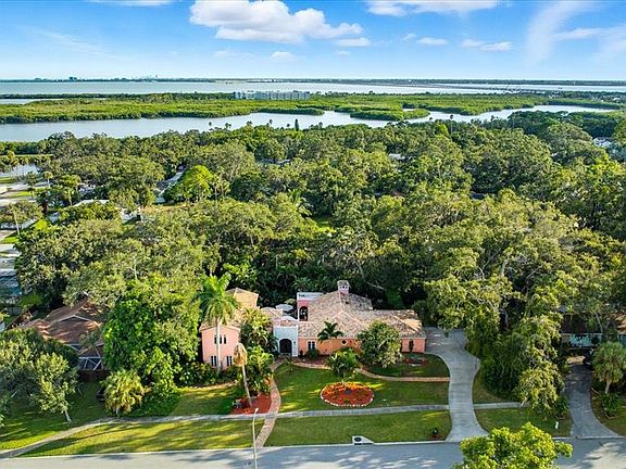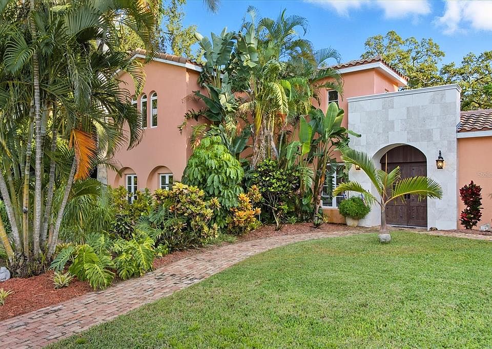 Escape to your private Spanish Mediterranean-inspired sanctuary, where timeless elegance meets modern luxury. Tucked away on an oversized double lot adjacent to sought-after Safety Harbor, this magnificent estate offers a resort-style living experience with unparalleled privacy. At the heart of the estate lies a breathtaking Chicago brick courtyard, featuring a tranquil fountain and a sparkling turquoise 40' x 14' pool. This serene oasis is an entertainer's dream, perfect for both grand celebrations and quiet relaxation. The magnificent Douglas Fir old-world front door opens to a grand foyer showcasing soaring ceilings, graceful archways, and a stunning hand-painted Tuscany mural. Beautiful Travertine floors flow seamlessly throughout the entire home, leading you to an ultimate gourmet chef's kitchen meticulously designed with two large granite islands, custom cabinetry, and a suite of professional-grade luxury Monogram appliances. The crown jewel is the expansive 900 sq. ft. master suite, a true owner’s sanctuary encompassing the entire second floor. This private retreat offers the ultimate in opulent comfort, complete with a luxurious master bath featuring exotic marble floors. Modern convenience is ensured with seamlessly integrated smart home features, while a three-car garage and a location in a non-flood zone complete this exceptional offering. Rarely does a home combine this level of sophisticated design, seclusion, and modern functionality. This is a unique opportunity to own a private paradise that feels both a world away and close to everything.
