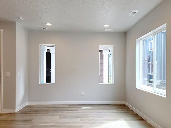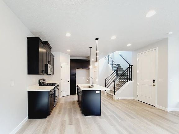 Introducing a finished end-unit townhome, move-in ready and waiting for you to call it home! Thoughtfully designed for how you want to live--all 3 bedrooms are located upstairs, featuring an oversized main suite with an extra nook, dual sinks, tile, and stylish quartz. The open main floor boasts 9' ceilings, a beautiful luxury vinyl plank wood flooring that contrasts with moody dark cabinets featuring black hardware. Don't forget the large corner pantry--storage galore! A powder bath adds convenience, and the strategically placed laundry area makes everyday living a breeze. Don't miss this chance to be the first to make new memories in this modern townhome bathed in sunlight.