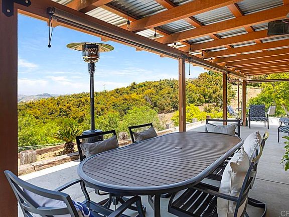 Motivated seller is willing to help with closing costs or temporary interest rate buydown with the right offer! VA Assumable loan at 2.75%. Discover the epitome of tranquility in Valley Center with this stunning 4.3-acre property, perfectly secluded yet only 10-15 minutes from the freeway. Embrace a lifestyle of serene beauty with panoramic canyon and valley views, featuring 375 avocado trees and over 50 other fruit trees, including citrus, persimmon, Asian pear, and artichoke. Enter through a shaded walkway with a tranquil Koi pond, setting the tone for the rest of this exquisite home. Inside, be captivated by breathtaking views from nearly every room. The spacious primary en suite boasts a remodeled bathroom with a walk-in dual-head shower, a seat, and an open-air garden feel. The primary walk-in closet is made complete with its washer and dryer. The entertainer's dream of a family room addition features an indoor/outdoor kitchen with concrete counters, designer sconces, newer appliances, and custom-painted distressed cabinets. The vaulted wood-beam ceiling and fireplace in the family room open up seamlessly to the expansive patio through stacking glass doors that seem to disappear and extend your living space outdoors. Multiple electrical upgrades, including two tankless water heaters, upgraded panels, 32 solar panels, and a generator, ensure modern comfort year round. In addition to the two-car attached garage with laundry, the freestanding workshop offers built-in shelving, two garage doors, and vaulted ceiling ready to be used for desert toys, cars, or anything your imagination comes up with. Outdoor lean-to with its storage shelves and workbench adds endless opportunity. The yard offers a dog run, spa/hot tub, outdoor closet for patio cushions, and plumbing for an outdoor shower, all within a fully fenced property with an electronic gated entry for privacy and security. While currently not maintained, the avocado orchard awaits a new owner to restore it to its original glory, blending seclusion and convenience for a true haven. Don’t miss the opportunity to own this piece of paradise and start living the dream!