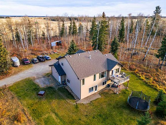 Beautiful and PRIVATE acreage nestled amongst the trees northeast of Sundre. This WONDERFUL property is less than 15 minutes to Sundre, only 25 minutes to Olds, and just over an hour to Calgary. The acreage offers a 2012 custom built Legacy Home with 5 BEDROOMS & WALKOUT basement, mature trees and is SET UP for country living and relaxation. Upon arrival, you will find a little under 5 acres with mature trees, native plants, pasture areas, raised garden beds, firepit area, walking trails, wonderful landscaped yard, and horse shelter, all fully fenced and cross fenced for your horses. The charming custom home is thoughtfully designed offering comfort, functionality, and space for the whole family. It offers a great open floor plan for entertaining indoors and out. From the moment you walk in you are greeted with a large open landing boasting a built-in bench with coat rack and shoe storage, high ceilings, very open floor plan and an abundance of natural light. The main floor includes a spacious kitchen offering stainless steel appliances, generous countertop space, pantry and breakfast bar, dining area leading out onto a nice sized deck - perfect for outside gatherings and bbq, living room with cozy gas fireplace, and a generous sized primary bedroom with a four piece ensuite and walk-in closet. The main floor upper level consists of 2 more nice sized bedrooms, 4 piece bathroom, and convenient laundry room. Downstairs, the fully developed basement features a large family room with walkout access to the backyard, two additional bedrooms with 1 having a cheater door to the 4 piece bathroom and plenty of storage under the stairs - all with IN-FLOOR HEATING. And to top off this wonderful package is an oversized 30’ x 23’ 6” HEATED attached garage. With space to grow and room to entertain, this acreage truly has it all. This property is move-in ready - so it is time to escape from the city and enjoy the privacy and tranquility of country living.