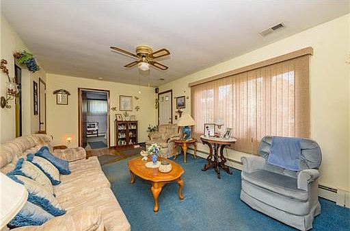 3 bedroom 1 bathroom Ranch style home. Enter into the formal living room. Home features an eat in kitchen. Formal dining room. Partially finished basement with laundry hookups. Spacious backyard with a patio. Blacktop driveway for exclusive parking. Great starter home! Stop looking and make this your home now!