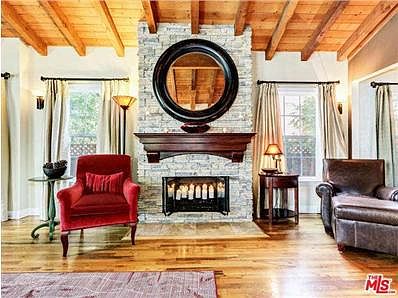 Beautifully remodeled home offers an abundance of features in an effortlessly flowing floor plan. The light and airy 2-story foyer welcomes you into living room with original vaulted beam ceiling & stone mantle fireplace. Separate formal dining room. Adjoining kitchen will delight with 2 dishwashers, ovens & sinks. It also features an oversized pantry & walk in broom closet, commercial-grade range hood with six-burner stove. Large island with seating for 4 is ideal for meal prep & entertaining. The light-filled family room has built-in storage.The first floor is completed with bed & bath perfect for a guest suite. French doors lead out to covered, private patio & fenced yard which features lush landscaping, mature citrus & plum trees. Carport next to garage doubles as extra entertaining space. Upstairs there are 3 bedrooms, 2 bathrooms & office. Well-appointed master suite with fireplace opens to private patio with gorgeous view. Steps from restaurants, galleries, stores and studios.