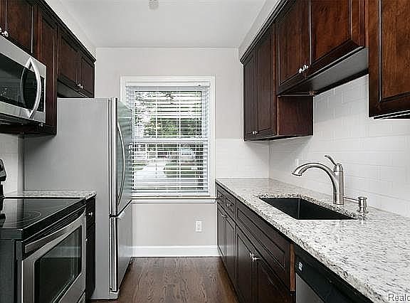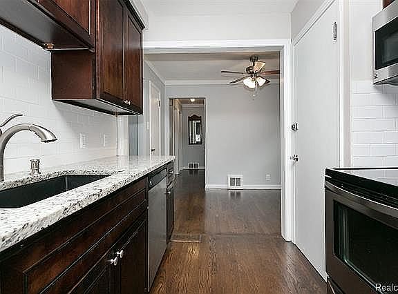 The most charming 3 bedroom ranch home in Royal Oak is move in perfect! Located near Beaumont Hospital - this home has been updated throughout including fully renovated galley kitchen with granite, stainless, and cherry cabinets. Renovated bath with bright subway tile and tasteful fixtures. Deep walnut tone wood floors in all rooms except bath. Spacious lower level is partially finished. All appliances included. Freshly painted throughout and ready to enjoy! Peaceful fenced back and 2 car detached garage.