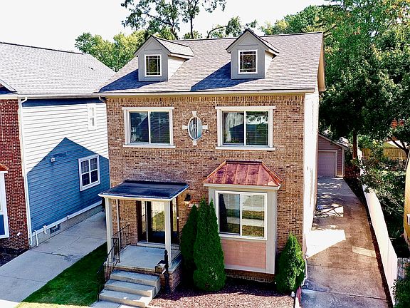 This newer build open-concept brick colonial is located in a desirable area of NW Royal Oak near Woodward Avenue and Corewell (Beaumont) Hospital. On the main level, the home offers 9-foot ceilings on the main level, a gas fireplace, granite countertops, stainless steel appliances, and hardwood flooring. Upstairs, the primary suite includes a tray ceiling, walk-in closet, ensuite bathroom with a jetted tub, and access to a private balcony. A second-floor laundry adds convenience. The finished basement features a wet bar and extra space for entertaining or relaxing. Outdoor features include a covered patio, fenced lot, a two-car garage. Updates include full remodel (2015), new roof (2022), fully lined sewer system (2024), and yard improvements (2025). The home is also equipped with a 50-amp external generator hookup and plumbed for an additional full bath in basement. Don't miss out on the opportunity to own this delightful home!