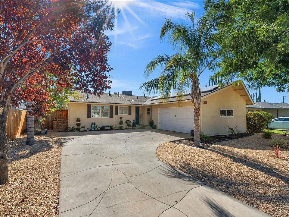 Immaculate Home with Paid Solar and Beautiful Upgrades!This well-maintained home offers energy efficiency and modern comfort with paid solar, dual-pane windows, and luxury flooring throughout. The updated kitchen features newer appliances, stylish countertops, and sleek cabinetry, plus a cozy nookperfect for morning coffee or tea.The open living and formal dining areas create an inviting space for relaxing or entertaining, complete with a charming fireplace feature. Step outside through the living room door to a spacious backyard with a detached patio, children's play set, citrus trees, and room for gardening. The fencing is newer for added privacy and peace of mind.All three bedrooms are generously sized and include ceiling fans. The hallway bathroom features a tub/shower combination, while the second bath offers a convenient walk-in shower. Two car garage with newer door. This home will not disappoint you.