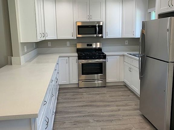 Upgraded Kitchen, with stainless steal appliances, shaker white cabinets, quartz countertops