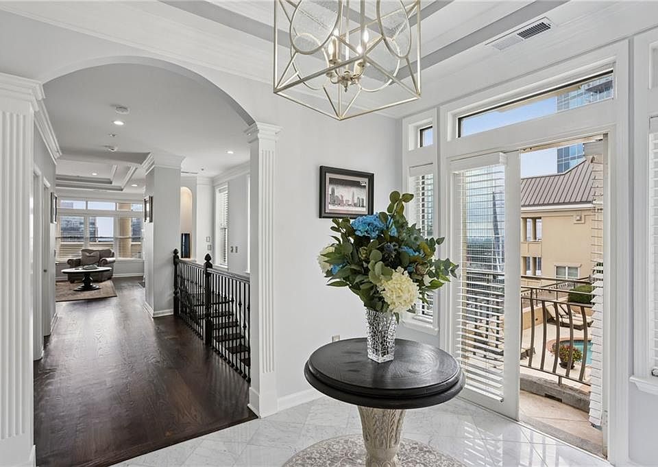 Welcome to the pinnacle of luxury living—an Exquisite Two-Story Penthouse rising gracefully above the City on the 19th Floor of the prestigious Meridian Buckhead. This rare residence blends timeless elegance with modern comfort, offering 3 spacious Bedrooms, 3.5 refined Bathrooms, and distinguished spaces for both leisure and entertaining. From the moment you step inside, light pours into this Coveted Corner Home, where soaring Windows frame Sweeping Views and create an atmosphere of warmth and sophistication. Freshly painted walls in a serene neutral palette complement the Hardwood and Marble Flooring, setting the stage for a lifestyle of effortless refinement. At the heart of the home on the Upper Level lies a Gourmet Kitchen, complete with Stone Countertops, White Cabinetry, Stainless-Steel Appliances, Breakfast bar, and a Walk-in Pantry. The grand Living and Dining area have a large Balcony overlooking the Buckhead skyline and a grand Fireplace, which invite gatherings of all kinds. A gracious salon and powder room along with a large en-suite with a private Balcony complete the Main Level, adding both charm and function. Ascending to the Lower level, you will find two en-suite Bedrooms, each designed for quiet retreat. The expansive Owner’s Suite is a sanctuary of indulgence, boasting a spa-like bath with walk-in shower, a deep Soaking Tub oriented toward serene vistas, Walk-in Closet and large Sitting area with a Fireplace. Two northwest-facing Balconies offer breathtaking sunset views—an evening ritual you will never tire of. This remarkable home also provides a full-sized Laundry Room with space for Storage on the Lower level. Three Parking Spaces in the Covered Parking Garage, and an exclusive separate Storage Unit . All Furnishings Negotiable The Meridian Buckhead pampers residents with a host of world-class amenities: a Rooftop Pool, state-of-the-art Fitness Center with Squash Court, Sauna-equipped locker rooms, Theater, Library with Conference space, Billiards room, and a serene English Garden complete with putting green, Fire pit, and chef-worthy grilling stations. Attentive 24/7 concierges ensure every need is met, while the surrounding neighborhood offers unparalleled dining, high-end shopping, and seamless access to Path 400 and the best of Buckhead. This is not just a home—it is a statement of refinement and a lifestyle defined by beauty, comfort, and distinction.
