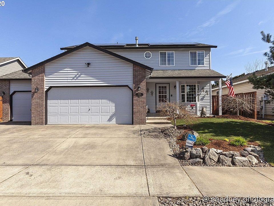 Move-in ready. Living room w/gas fireplace, family room, dining room, office & kitchen w/Bosch DW & eating area. 4 bedrooms inc. spacious master w/jetted tub & walk-in closet. SMART thermostat, owned security system, RING doorbell & flood lights w/video. Central vac & AC. Landscaped, fenced yard w/sprinkler system. Oversized concrete back patio, hot tub & tool shed. Spacious 3 car garage w/man door. Solar panels w/transferrable warranty. Backs to undeveloped area. Near shopping & schools.