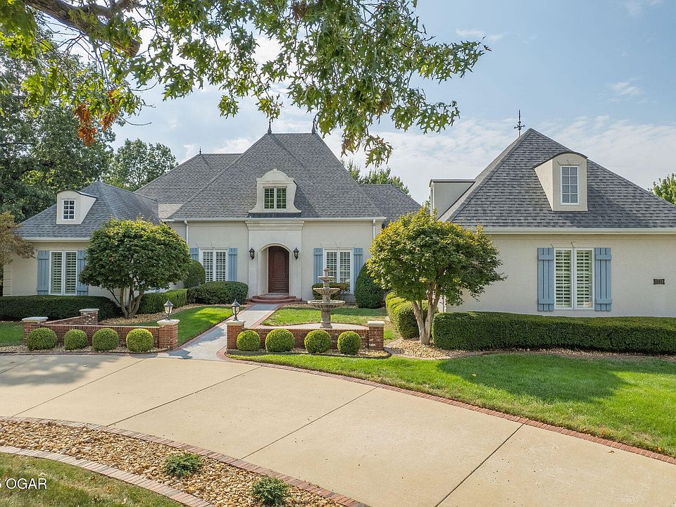 Welcome home to this architecturally stunning French chateau featuring a perfect blend of luxury, comfort and functionality. From the moment you walk in the solid stone entryway, you'll notice gleaming hardwood floors and an abundance of natural light. The kitchen showcases furniture quality cabinets, 6 burner gas range, center island with 2nd prep sink, wine refrigerator, double ovens, beverage bar and walk-in pantry. There are multiple dining spaces, plus formal living room and family room with stone fireplace and cherry beamed ceilings. There are two main floor bedroom suites including the primary with oversized walk-in closet and sitting area. The upstairs has two more bedroom suites, providing plenty of space for everyone. The basement has cedar closet and a 3rd living area. Other highlights include 4 inch plantation shutters, circle drive, plus newer water heaters and HVAC systems. Unusually private outdoor living space with a brick courtyard surrounded by lush landscaping on 1.6 acre lot. Minutes from everything. Call today for your private showing.
