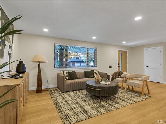 Welcome to this completely reimagined mid-century ranch tucked quietly away in the heart of Wheat Ridge, in the charming Ridgeview Estates neighborhood. This 3-bedroom, 2-bathroom home offers a modern luxury design with high-end finishes throughout. The primary suite enjoys its own private wing, featuring a beautifully finished en suite bath with a walk-in shower, dual vanity, and spacious walk-in closet. The kitchen has been fully remodeled with natural honey cabinets, quartz countertops, black stainless steel appliances, and a large island with seating—perfect for entertaining or everyday living. The home’s open-concept layout flows seamlessly into the living and dining areas, filled with natural light, warmth, and style. Step outside to a covered patio and a large backyard, ideal for gatherings, gardening, or simply enjoying Colorado evenings. The attached two-car garage connects through a convenient mudroom and laundry area with brand-new washer and dryer, completing this exceptional home. Tucked in a quiet, hidden pocket of Wheat Ridge, Ridgeview Estates offers the perfect blend of serenity, community, and convenience—just minutes from parks, shops, and restaurants.