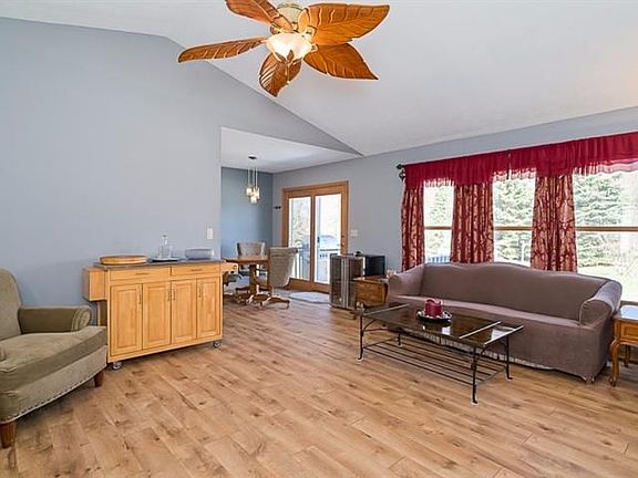 Adorable well maintained ranch on 3 acres with mature trees and beautiful views! Cathedral ceilings in the great room and main floor master with private bath along with 2 additional beds and 2nd full bath. Full basement offers laundry, 2nd stove and plenty of space to finish as you like. So many big updates including air to air heat pump, new furnace w/humidifier, water heater & pressure tank. New flooring and front door too! Home is wired for back up generator, has alternative pellet stove and dog kennel inside the garage along with the entire 3 acres of invisible fence. Ready for new owners, come see for yourself!