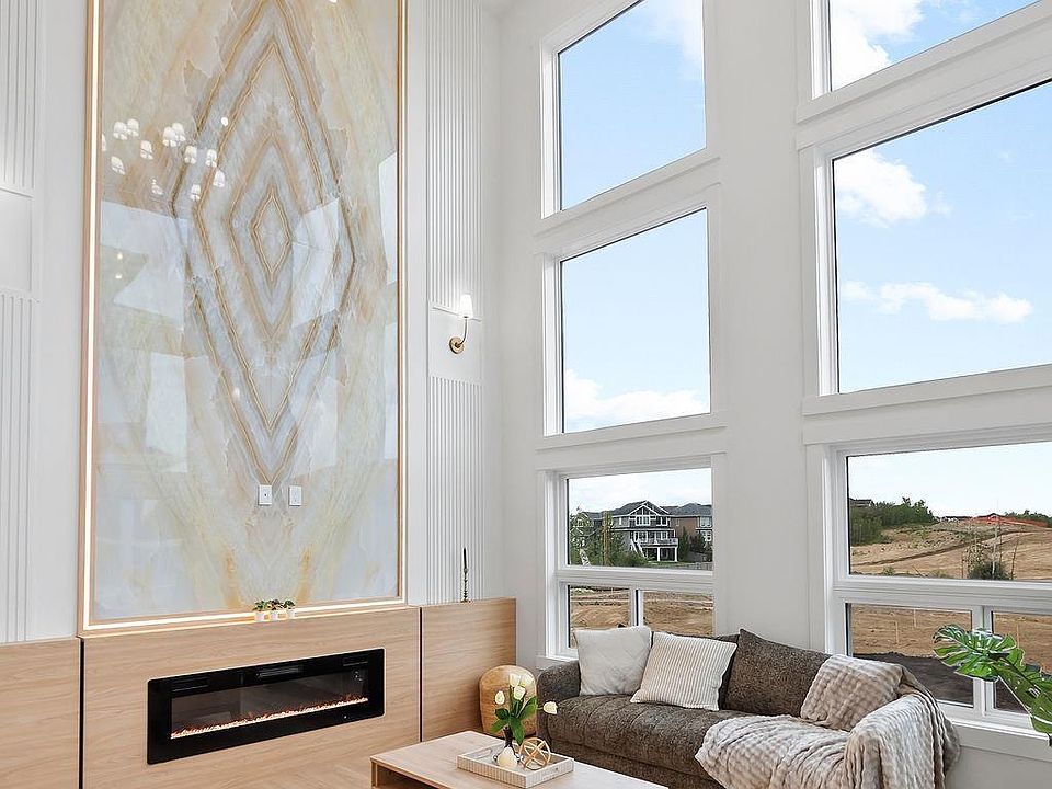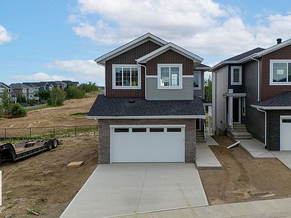 REGULAR LOT AND PARTIAL WALK_OUT! BACKING ON TO POND AND A WALKING TRAIL! Step into this brand new 2350+ sqft home in Starling South, offering 5 bedrooms & 3 full bathrooms with elegant upgrades throughout. The foyer features a stylish mirror wall, setting a modern tone as you enter. The chef's kitchen is fully upgraded with premium appliances, quartz counters, and a separate SPICE KITCHEN, flowing into a bright dining area. The OPEN TO BELOW living room impresses with soaring ceilings, large windows, and a feature wall with a fireplace, overlooking SCENIC views. A main floor is complete with a bedroom, full bathroom, and a mudroom off the garage adds everyday convenience. Upstairs includes 4 bedrooms, a bonus room with a feature wall, and a LUXURIOUS primary suite with fireplace, DUAl feature walls, and a spa-like ensuite with a freestanding tub and tiled shower. Complete with a SIDE ENTRANCE to the basement and a deck, this home is a rare find in an incredible location.