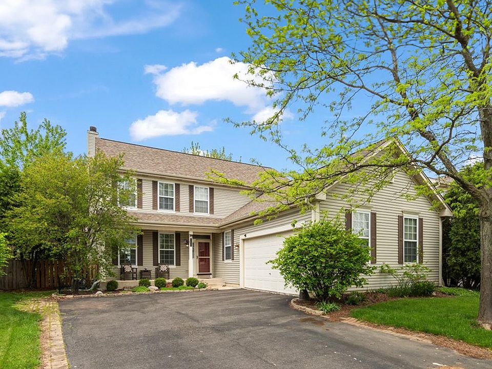 Move quick on this perfect location for young families! This charming Geneva home is nestled within a quiet family-friendly cul-de-sac conveniently located in the Fisher Farms subdivision and backs up to the open fields of the Heartland Elementary School, part of the highly rated 304 school district. Walk your young kids to school from this delightful family-friendly residence that is situated on one of the best lots in the subdivision and boasts tons of space to grow with 5 bedrooms and 3 baths. Commuters can quickly access the train as it is only a 5-minute drive to downtown Geneva, which also provides an array of seasonal festivals, top-rated restaurants, shops, entertainment spots, parks, walking trails and more. Upon entering, you'll be greeted by a spacious foyer with vaulted ceilings and tons of natural light. The seamless main level features hardwood floors and abundant windows that span through the living room, formal dining room, sitting room and kitchen. The main level also has a versatile extra bedroom that sits next to a full bathroom - Perfect for guests! The kitchen is both functional and attractive, featuring a large island, granite countertops, stainless steel appliances, custom cabinetry, and a neutral backsplash. The family room offers a cozy fireplace flanked by custom floor-to-ceiling built-in shelving. Step outside to a fenced in backyard sanctuary with mature shade trees that also backs up to an open field, a peaceful view that is rare to find! The backyard also features a covered deck that is perfect for summertime grilling and entertaining. Upstairs, the primary bedroom boasts cathedral ceilings, a private bath with a double sink, a soaking tub, a walk-in shower, and an expansive walk-in closet. The full hallway bathroom allows for a separate bathroom just for the kids and sits near the other three generously sized bedrooms on the second floor. The huge finished basement offers endless possibilities - additional entertainment space, kid's playroom, a lower-level bedroom, or even your own home gym for workouts! Recent updates include a newer roof (2019), HVAC (2022), A/C unit (2022), water heater (2022), appliances (2022), fence installation (2022), freshly painted rooms, updated light fixtures, refinished vanities. Additional features include a main-level laundry room and ample storage throughout (including a large basement storage area).
