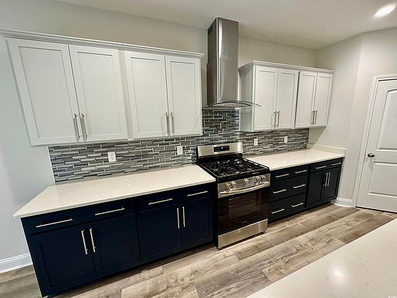 Welcome to Rivertown Row North, the most anticipated new development in the heart of Conway. Enjoy the comfort of Natural Gas heat, cooking & tankless hot water in this 4 bedroom 3 bath. The downstairs of this 1.5 story home has a large rear Master suite, another bedroom, full guest bath, laundry room, and kitchen with Quartz counter tops, subway tile backsplash, pantry, and kitchen island w/ seating. Upstairs has 2 more bedrooms and a 3rd bath. There is also a 2.5 car Garage with a recessed 10x11 work area, covered front porch, and a 13 x 10 covered rear patio with additional 13 x 10 concrete slab that doubles your outdoor entertainment space. Homes purchased early in the construction process may have Customization options. All homes in Rivertown Row North feature wider than average lots, open floor plans, 9' ceilings, painted garage interiors, fully cased windows, GAF high performance architectural shingles, 12' roof overhangs, Aristokraft Birch shaker cabinets, Rinnai tankless water heater, Frigidaire stainless appliances, and many other upgraded architectural details. The neighborhood will feature sidewalks, lighting, and a future community pool with pavilion. Building lifestyles for over 35 years, we remain the Premier Homebuilder of new residential communities and custom homes in the Grand Strand and surrounding areas. We are three-time winners of the Best Home Builder award from WMBF News Best of the Grand Strand. In 2023, we were also voted Best Residential Real Estate Developer in the Myrtle Beach Herald Readers Choice Awards and Best Home Builder in the Sun News Best of the Beach Contest. We began and remain in the Grand Strand, and we want you to experience the local pride we build today and every day in Horry and Georgetown Counties. Welcome Home at Rivertown Row North. Pictures in this MLS listing are not of the actual house. Listing pics are of the same floor plan from a different neighborhood. Colors, flooring, upgrades and other features will likely be different.
