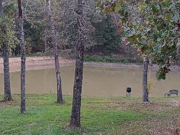 This ICF built (12” thick concrete walls and ceiling) berm home sits on 53 acres (+/-), features 1700 square feet of space with 3 bedrooms, 1 and ¾ baths, stained concrete floors, lots of custom work, and plenty of storage. The open concept living/dining/kitchen look out over the stocked ½ acre (approx.) pond and woods. The 7 foot wide covered porch wraps around the 2 open sides of the house, making for relaxing evenings just sitting and enjoying the wildlife.