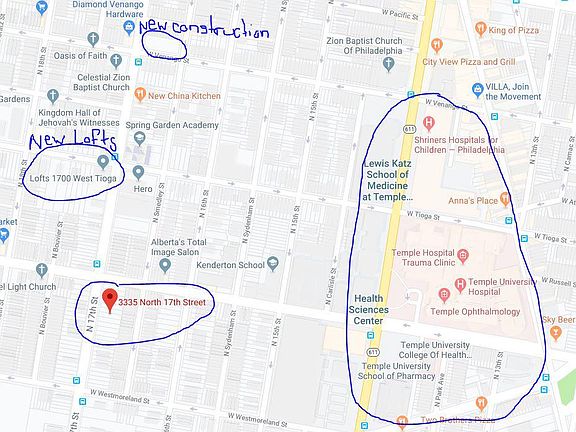 22.66 ft wide by 110 ft deep (2,493 sq ft) lot located in the quickly developing Temple Hospital section of Philadelphia. This property is located within the "Oppurtinity Zone". Potential to apply for a zoning variance for multi family, consult with your zoning professional. Some zoning variances for multi family new construction have been approved in the temple hospital area.