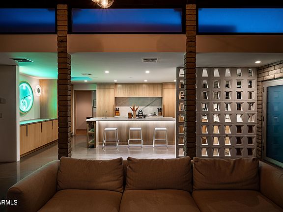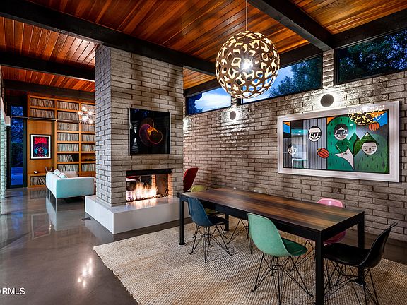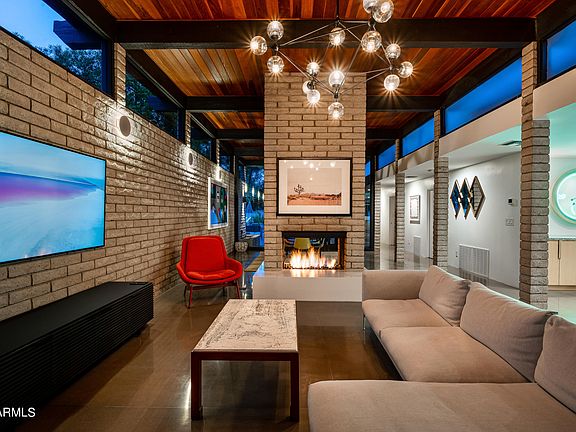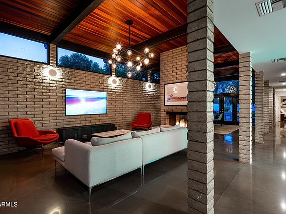 One of a kind MID CENTURY MODERN masterpiece with large, lush backyard and just steps from the award winning Arizona Country Club. This 4 bedroom, 3 bathroom home was built in 1972 by ASU's Dean of Architecture Calvin Straub. The home showcases post war era architecture with classic post and beam as well as block construction materials. As you enter the front door you're welcomed by the abundance of natural light from floor to ceiling windows, the breathtaking ''clear knot'' cedar ceiling, gorgeous concrete floors, European lighting by Light Form, 14' book case that spans the width of the room and double sided wood burning fireplace. The backyard is lush and private with a mature landscaping, large pool, putting green and multiple dining & entertaining areas.