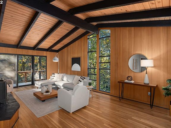 Kings Heights Mid-century intently situated on .99 acres at the edge of NW Portland's 5100 acre Forest Park. This distinct + skillfully renovated dwelling has vast new windows + handsome new aesthetics bringing the forest inside. New HVAC systems, plumbing + all electric home. Lofty living w/ exposed beams. Main floor primary w/ lux custom bath + expansive deck. 2nd suite up w/ skylights + balcony. Lower level in-law suite with walk out door. 7 min drive to NW 23rd's restaurants + shops. [Home Energy Score = 1. HES Report at https://rpt.greenbuildingregistry.com/hes/OR10193011]